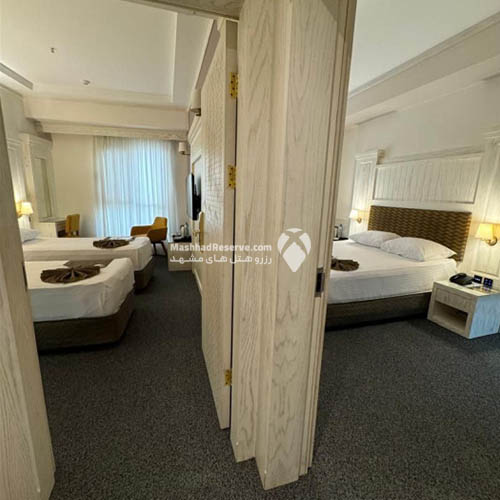 هتل مجلل و تازه تاسیس جوارالملک یکی ازهتل های نزدیک به حرم حضرت ثامن الحجج(علیه السلام) میباشد که در سال 1401 در خیابان اندرزگو افتتاح گردید. این مجموعه اقامتی با 9 طبقه بنا و146 باب اتاق و سوئیت از امکانات رفاهی ویژه ای برخوردار میباشد که موجب تمایز این هتل با دیگر هتل آپارتمان های شهر مشهد گردیده است. از امتیازات این هتل میتوان نزدیکی به حرم مطهر و دسترسی راحت به بازار های معروف و قدیمی شهرمشهد، اشاره کرد. این هتل به همراه پرسنلی مجرب و آموزش دیده با افتخار آماده پذیرایی از شما عزیزان و مهمانان گرانقدرحضرت رضا (علیه السلام) میباشد.